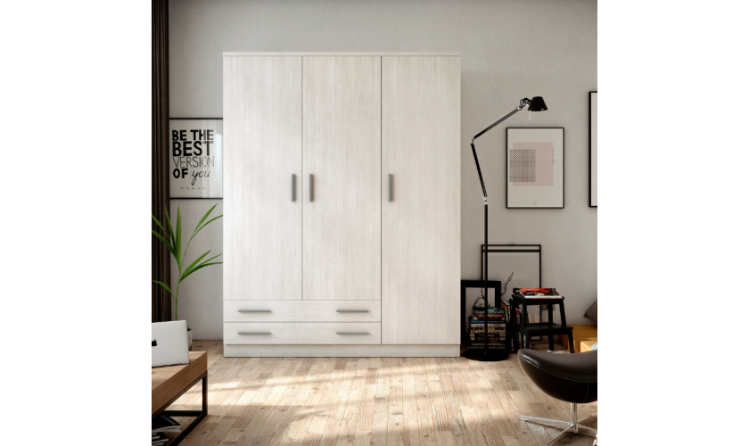 Armario de 218cm de madera color arios con perfil blanco