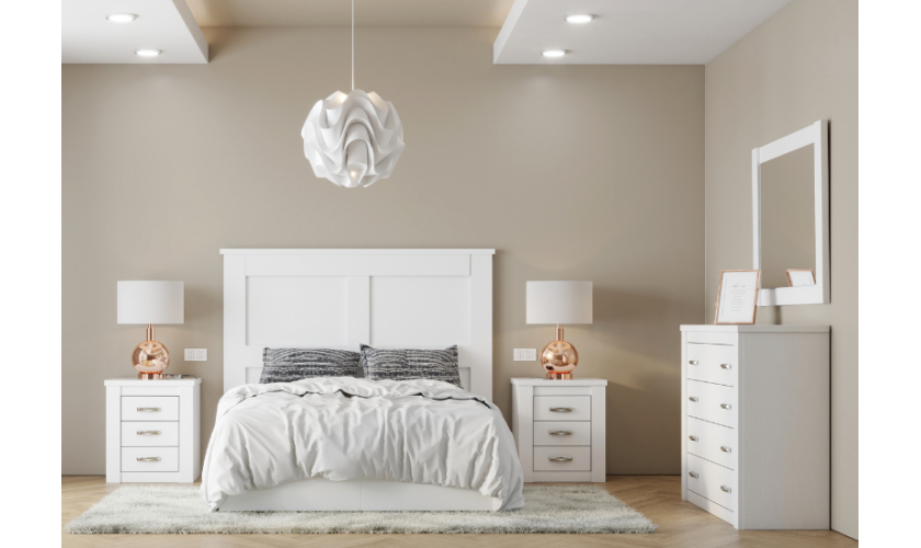Dormitorio de matrimonio en estilo rustico blanco o madera