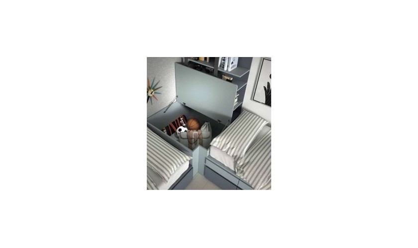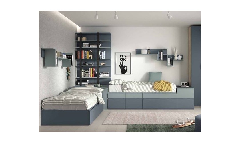 Dormitorio juvenil con dos camas, somier arrastre y armario