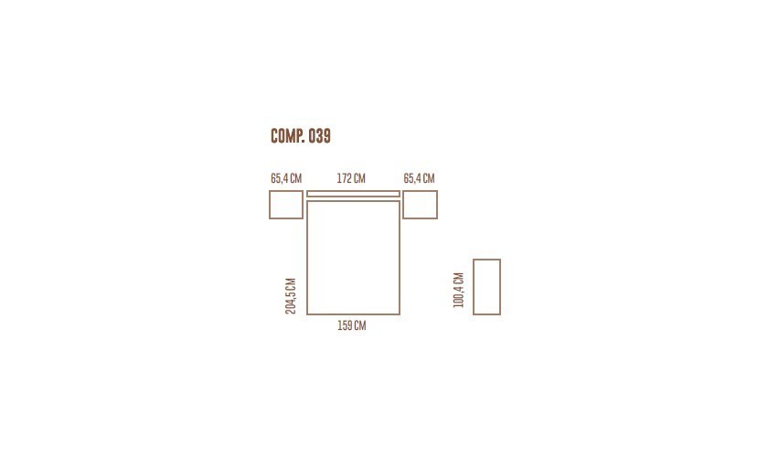 Cabezal Valentino 172x135, bancada volada tapizada 150x190, mesita 1 cajón con tapa embutida 65.4 modular todo lacado, juego de 2 soportes metálicos pizarra, mesita 1 cajón con tapa embutida 65.4 modular todo lacado tapa blanco lacado, comodín 1 cajón con tapa apilable lado izquierdo 100.4 modular todo lacado, mesita 1 cajón con tapa embutida 65.4 modular todo lacado.