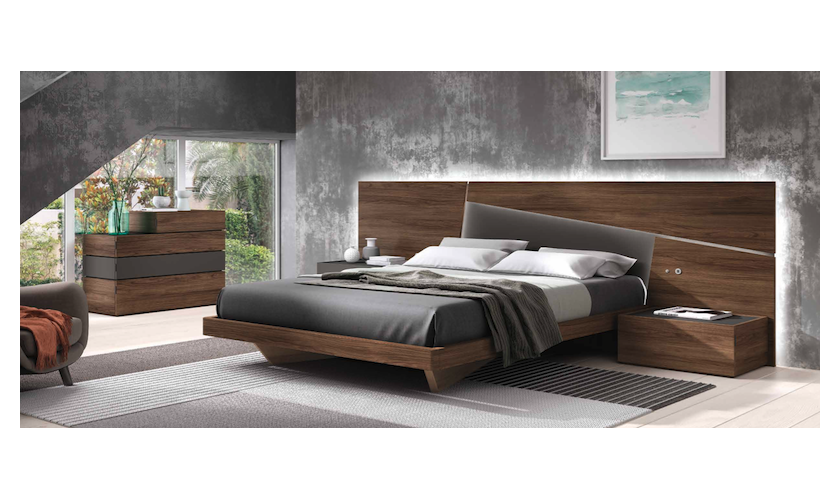 Dormitorio completo con cabecero en tonos pizarra y legend