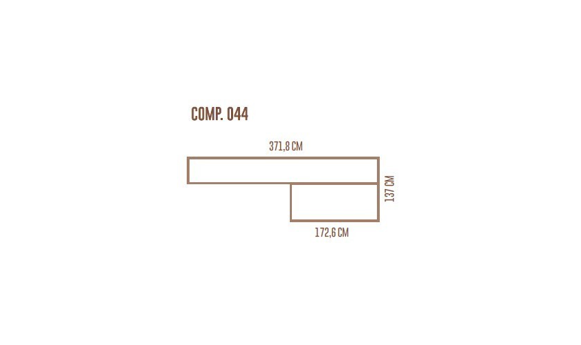 Sofá cama abatible tapizado en color crema con armario rinconero y estantería con cinco baldas de madera con acabados en gris lacado