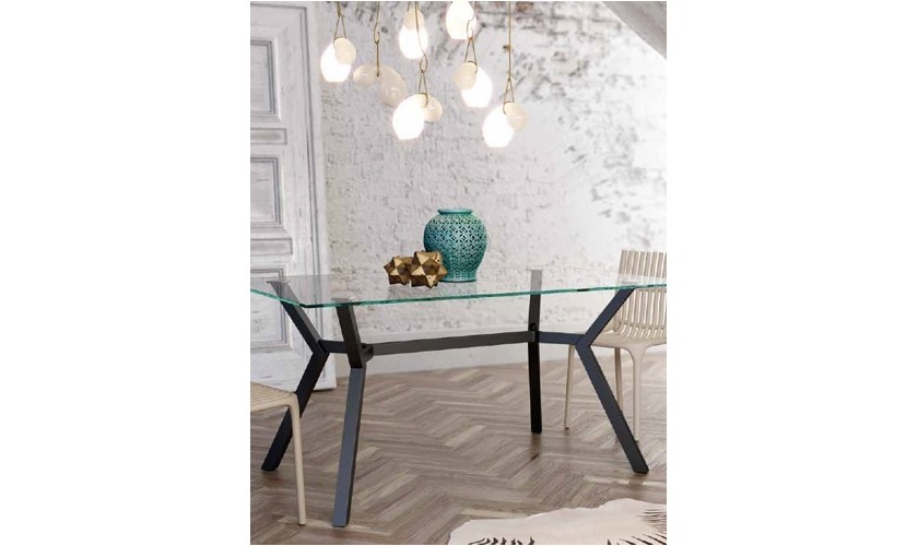 Mesa de comedor rectangular con pata metálica y sobre de cristal de 180x100x76 cm
