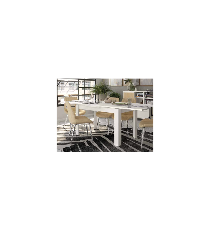 Mesa de comedor extensible de 140 cm A 238 cm en blanco mate con líneas modernas. Diseño elegante y práctico para hogares contemporáneos. Disponible en VetaMuebles.