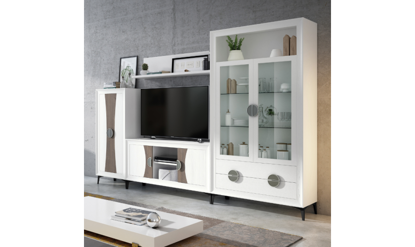 Caracterizado por su composición en dos tonos madera y la posibilidad de elegir entre base o patas.