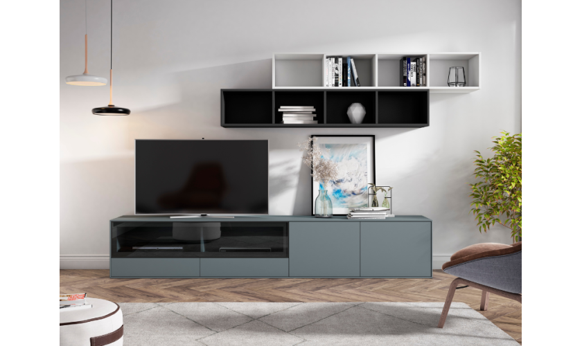 Mueble de salón moderno en Palma de Mallorca, muebles salón Palma, composición salón Nordic, salón estilo nórdico en Palma, muebles funcionales salón, VetaMuebles Palma.