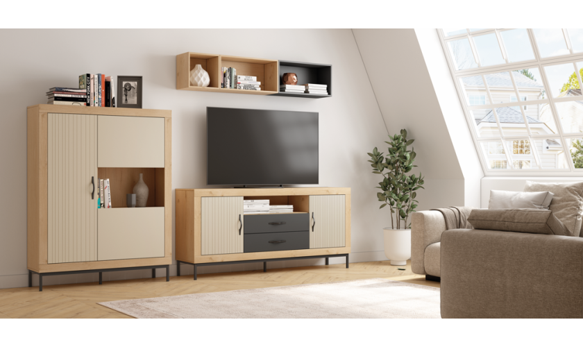 Mueble de salón moderno en colores Nómada y Petrol